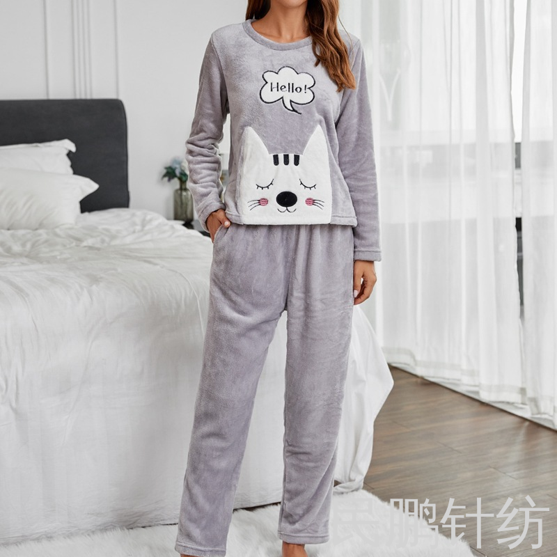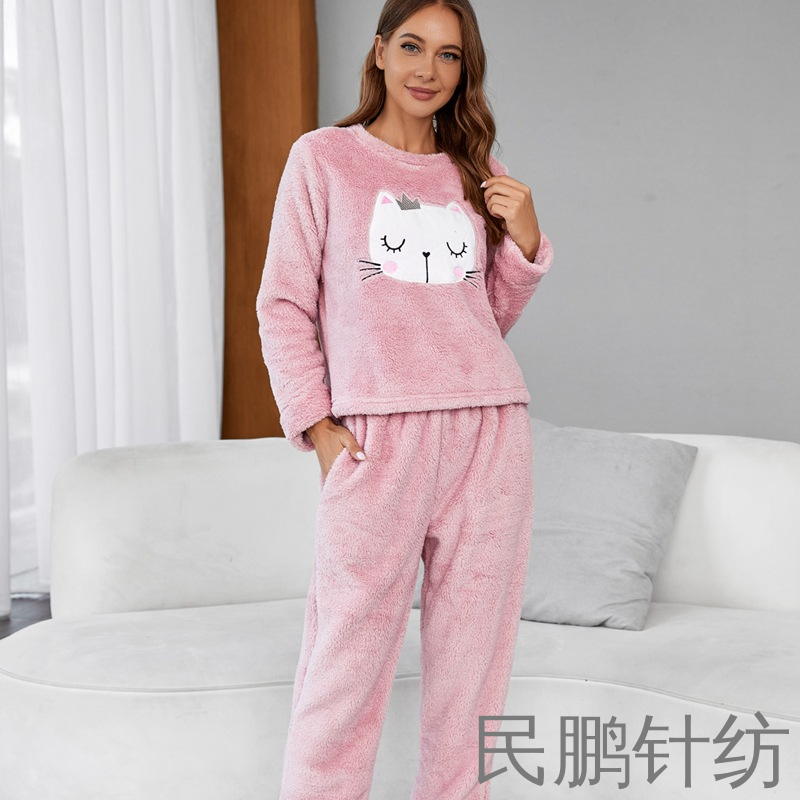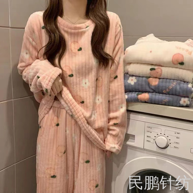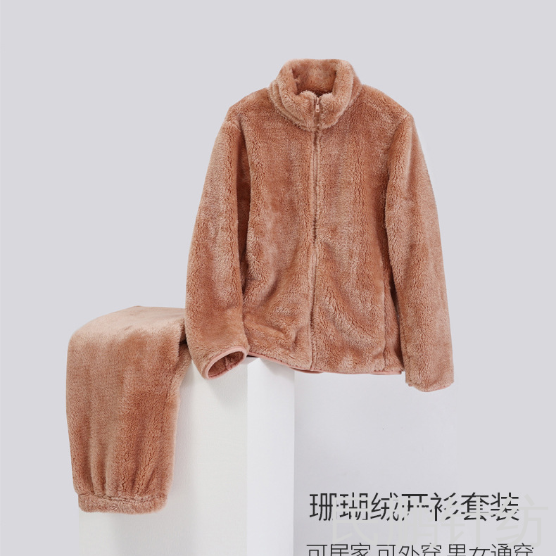 民鹏睡衣女珊瑚绒居家服法兰绒睡衣套装睡裤开衫情侣家居服可代发