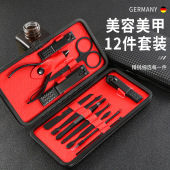 跨境指甲刀套装家用12件套美甲工具不锈钢修脚钳挖耳勺指甲剪全套