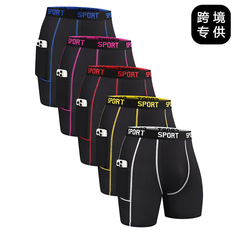 欧美跨境男士中长款纯色口袋款平角内裤透气舒适四角裤衩适合户外