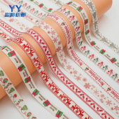 时尚简约百搭款式圣诞-1.5平纹印花织带现货现发工厂直销全棉织带