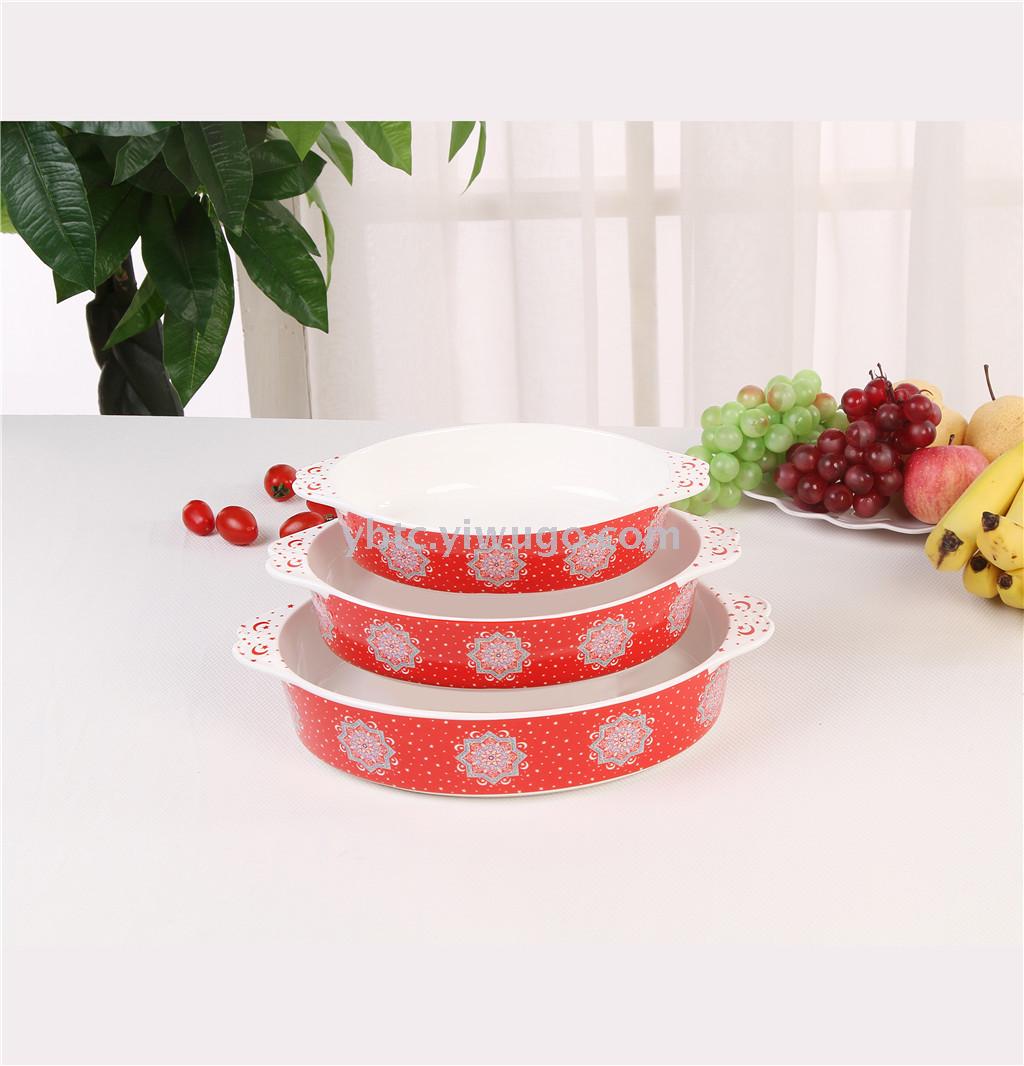 陶瓷三件套烤盘套装耐高温可入微波炉洗碗机家居日用厨房用品收纳