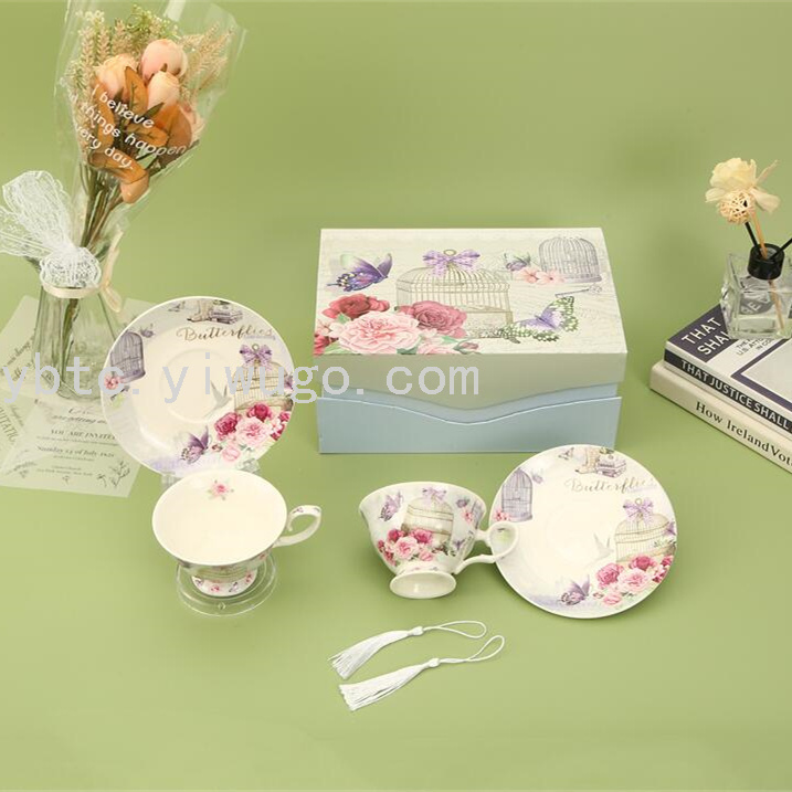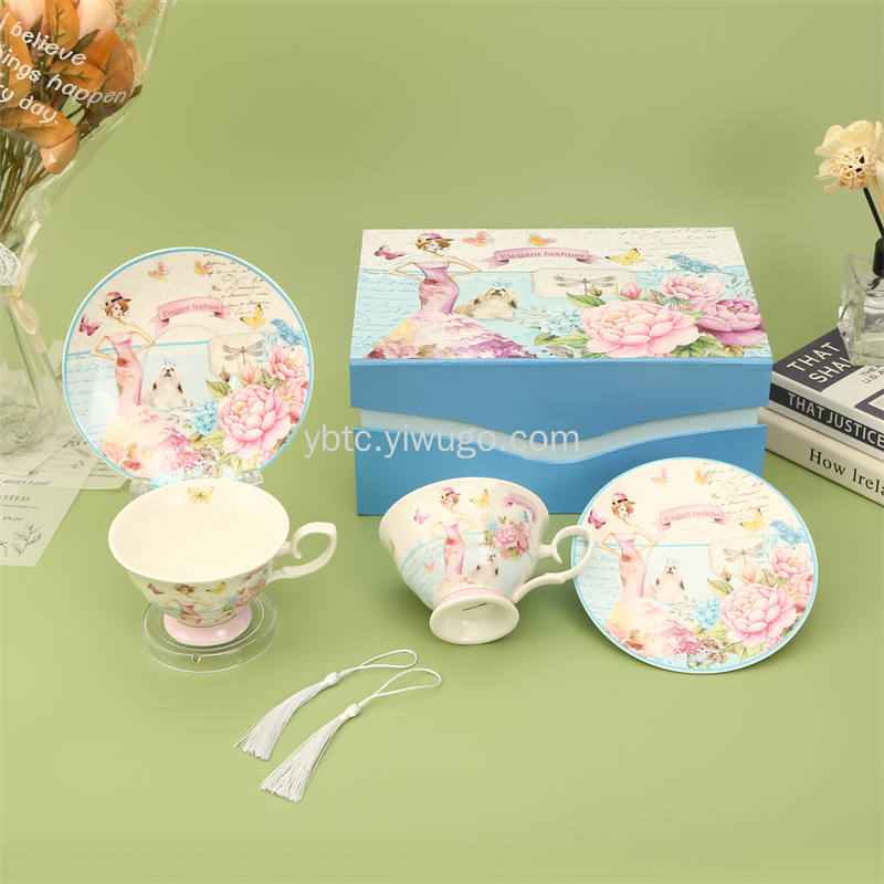 220毫升下午茶英式杯碟两杯两碟套装家居日用创意礼品咖啡厅茶具