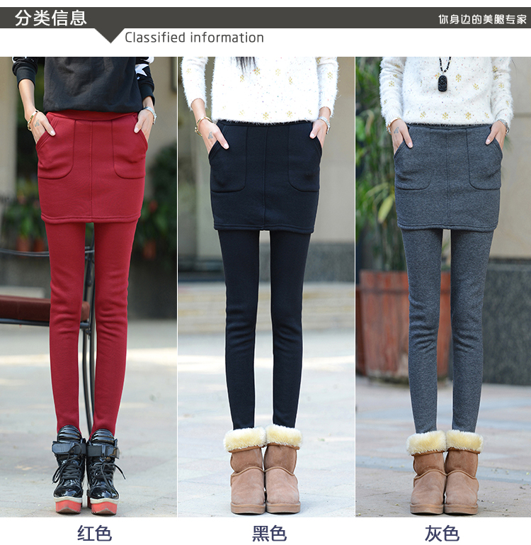 秋冬新款加绒加厚包臀打底裤裙假两件显瘦高弹外穿长裤子大码一体