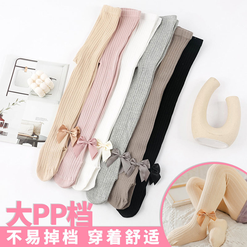 2021儿童袜子秋冬宝宝打底裤竖条纹纯色大PP裆大蝴蝶结儿童