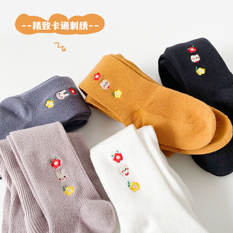 女童打底裤秋冬新款2021刺绣儿童打底裤韩版卡通动物女童连裤袜