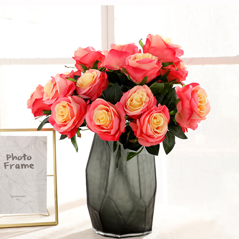 产地货源单支5头保湿玫瑰仿真花欧式客厅摆件装饰人造花假花玫瑰