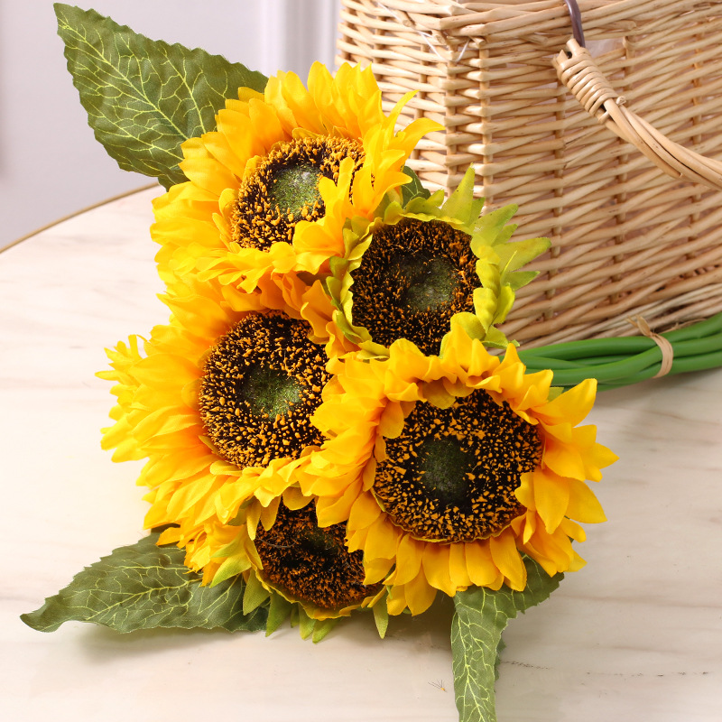 ins风仿真花diy把束大太阳花婚庆居家装饰落地花7头把束向日葵