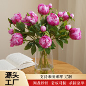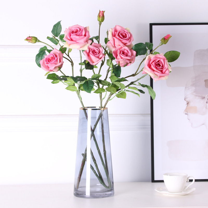 高品质仿真单支4头玫瑰 新中式客厅玄关装饰花艺假花摆件摄影道具