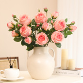 新款仿真3叉冰山月季蔷薇 高品质家居酒店餐厅装饰假花厂家直销