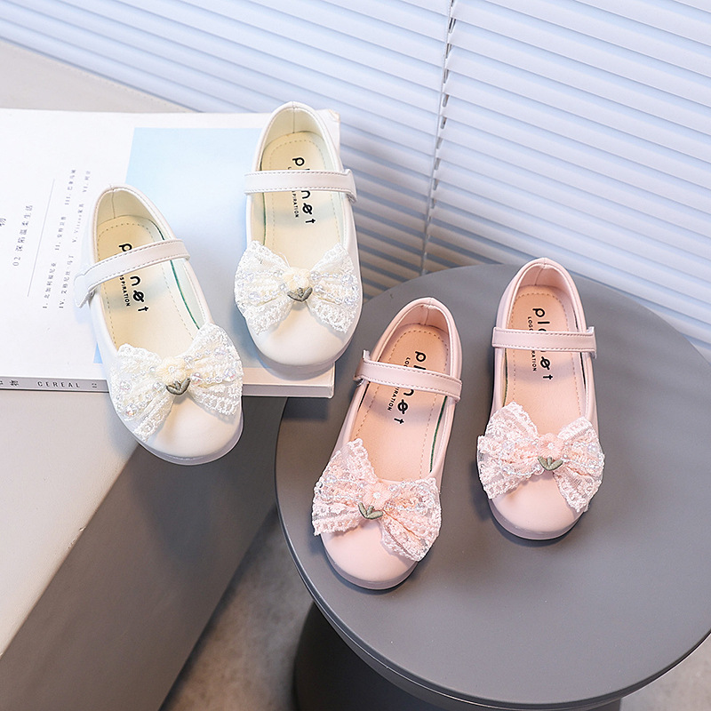 2025女童小皮鞋儿童公主鞋新款春秋小女孩鞋子蝴蝶蕾丝边软底单鞋
