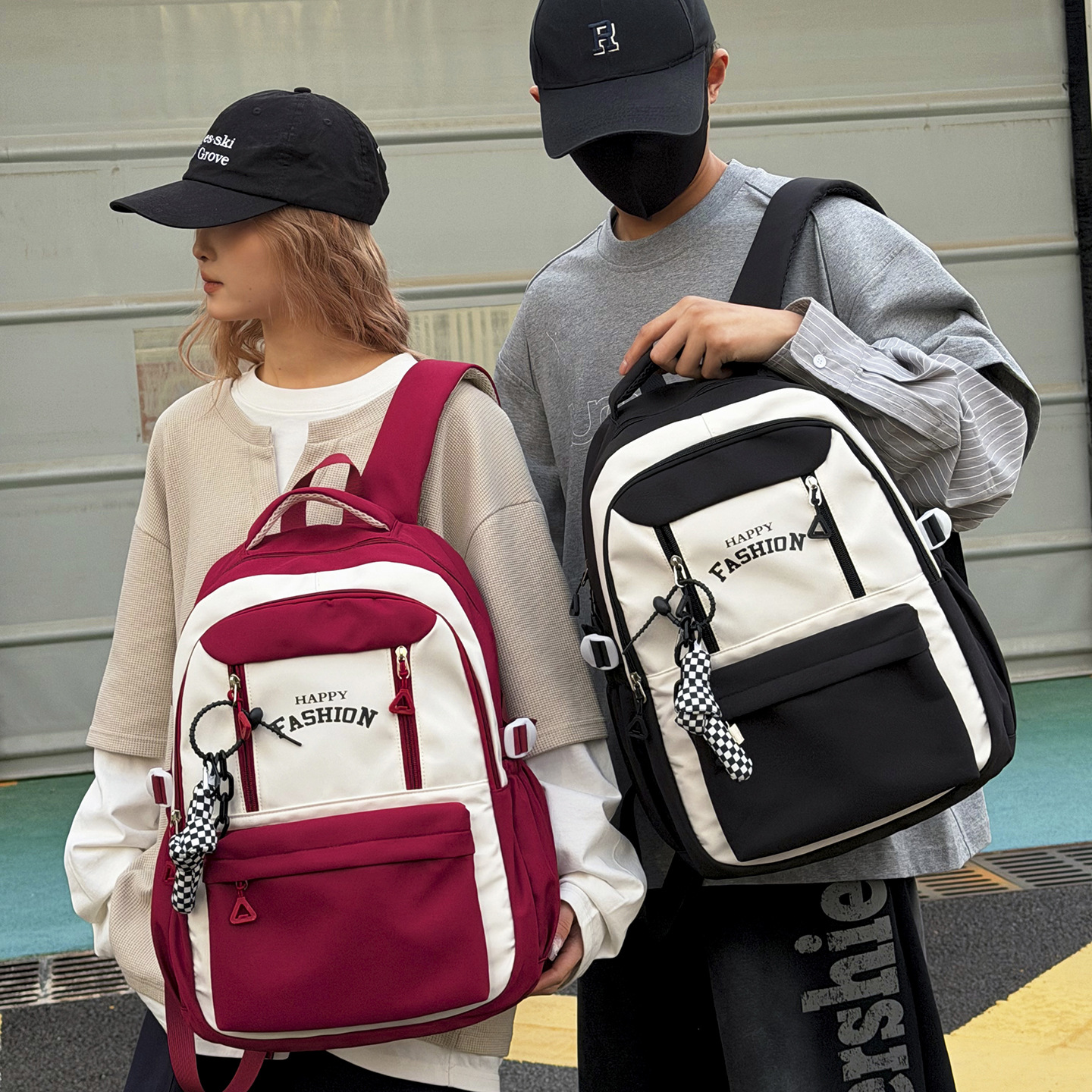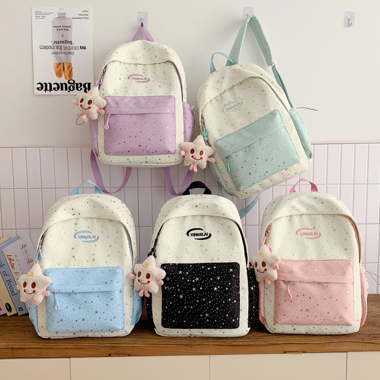 可爱撞色双肩包女星星小清新初中女生背包校园高中大学生书包外贸