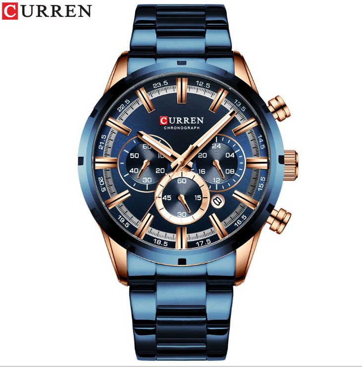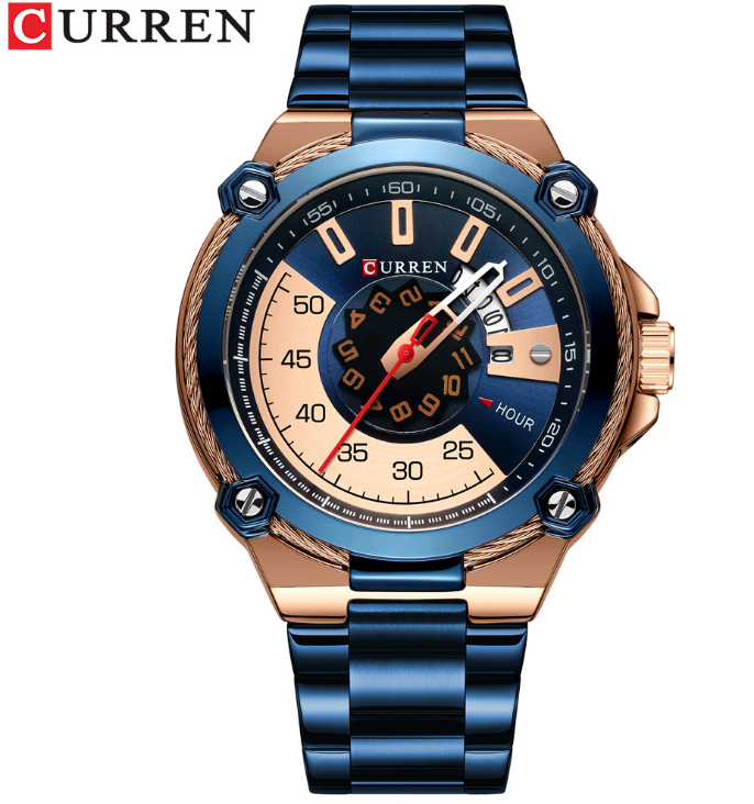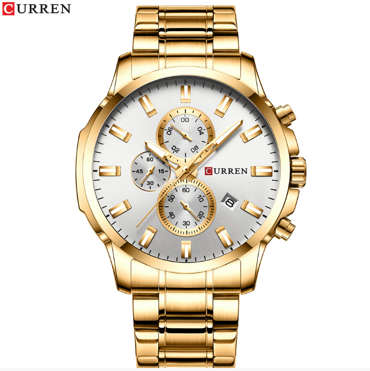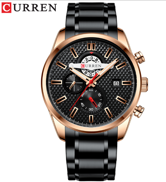 Curren/卡瑞恩新款8336男士钢带日历表 防水石英六针外贸手表男表