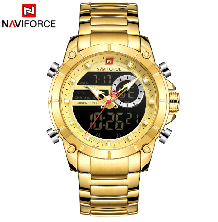 NAVIFORCE/领翔9163男士手表 电子表钢带表 防水石英表 运动男表