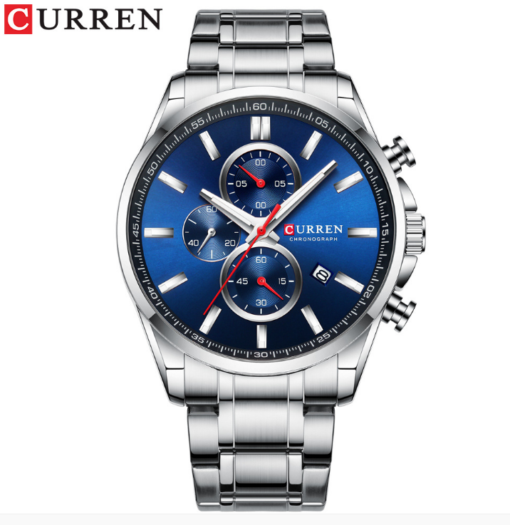 Curren/卡瑞恩8368男士手表 防水石英表 六针手表日历表钢带男表
