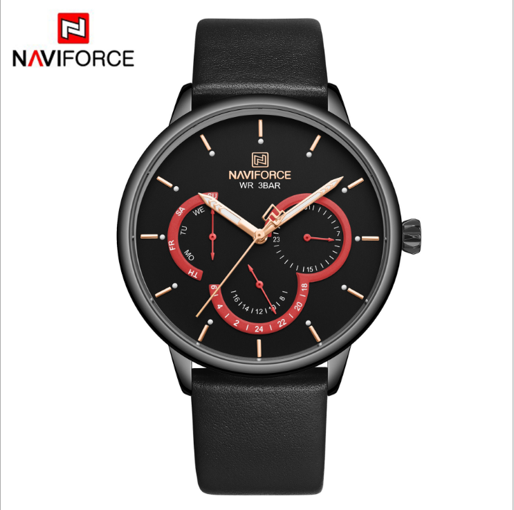 NAVIFORCE/领翔3011男士手表 防水石英皮带表 多功能日历商务男表