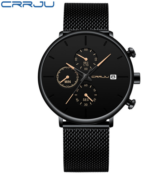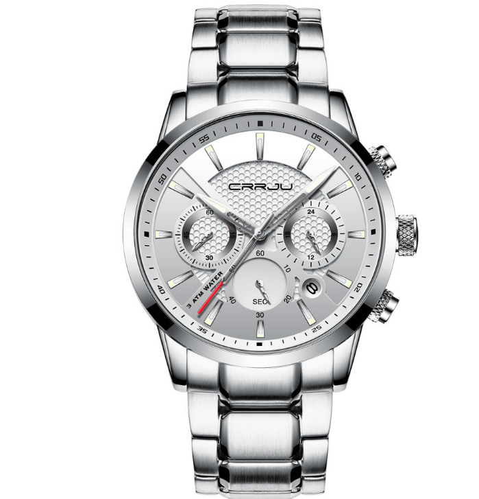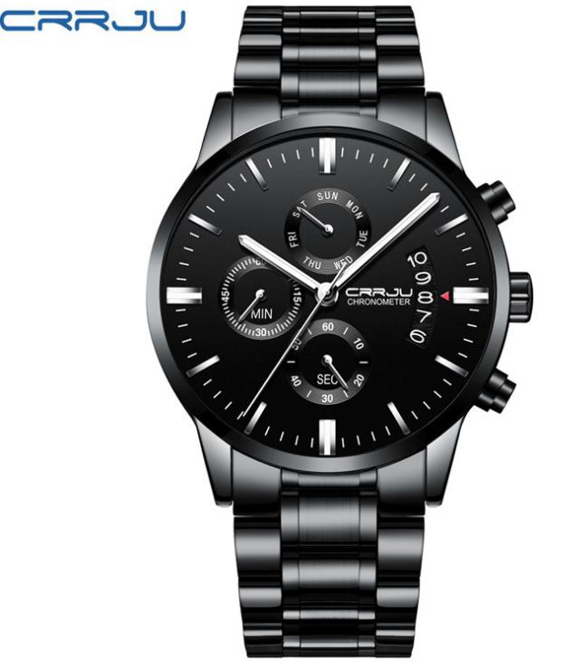 CRRJU/卡俊2212男士手表多功能六针实心钢带腕表防水手表批发石英