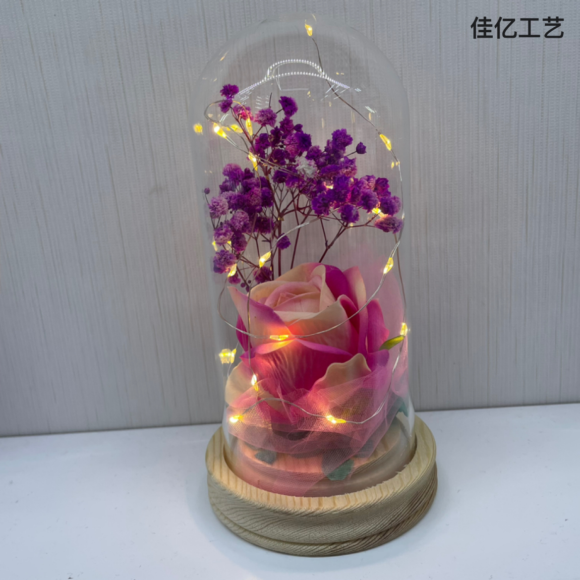 干花花束玫瑰永生花礼盒自然风干生日礼物玻璃罩装饰摆件真花创意