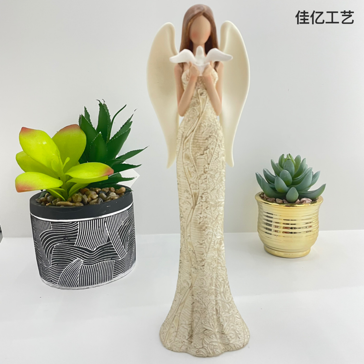 北欧销量过亿的纪念公仔天使祭坛仿木刻树脂工艺品家居娃娃大摆件