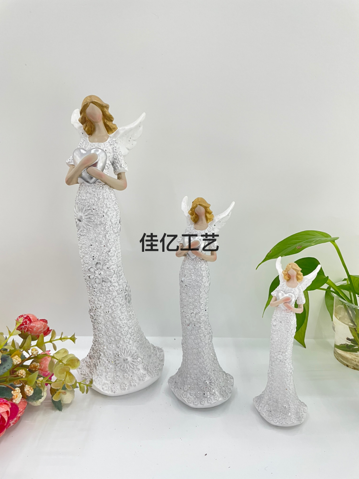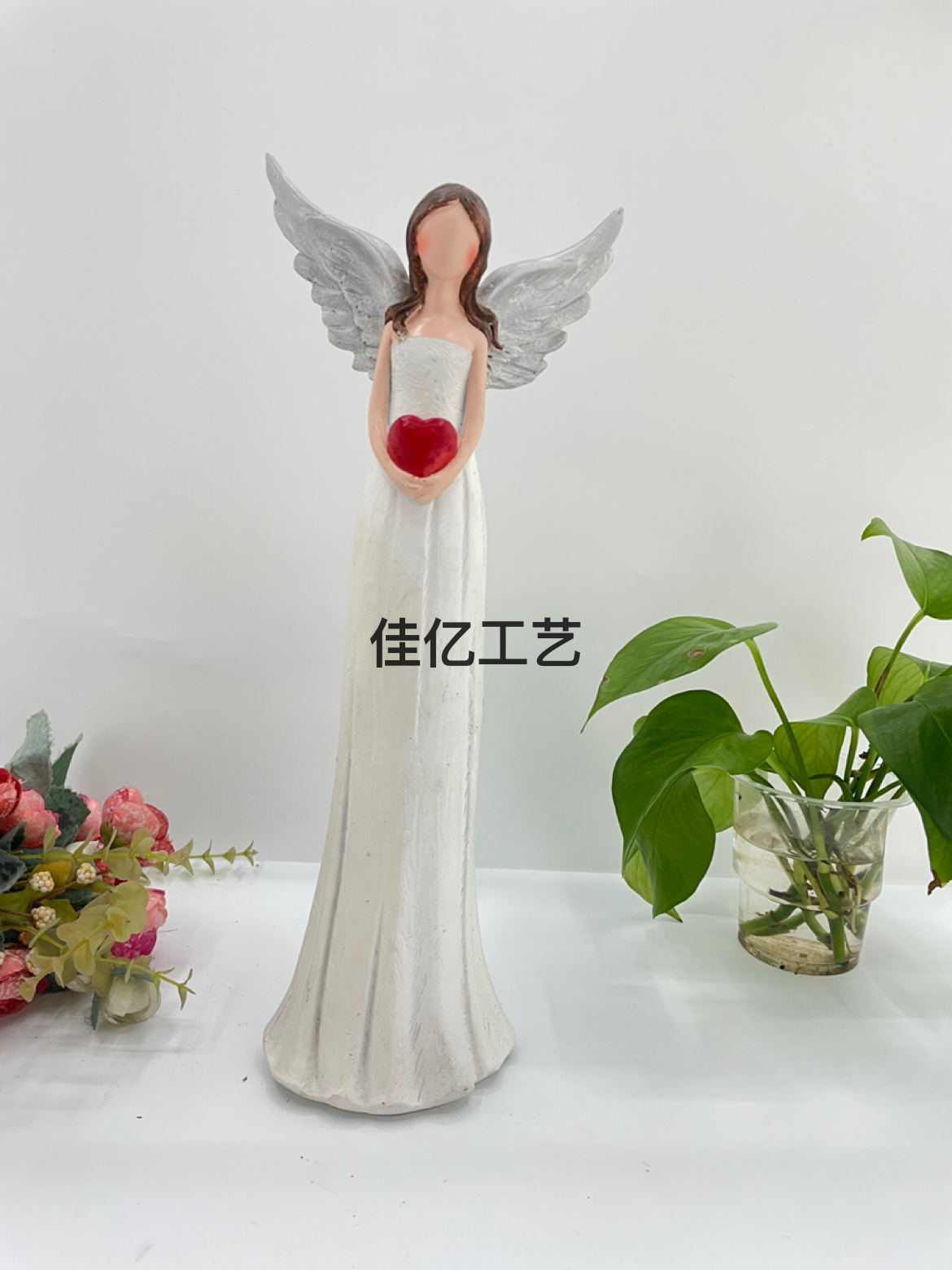 北欧质感女孩翅膀天使卧室客厅装饰情侣爱心摆饰树脂装饰客厅工艺