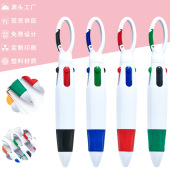 创意四色登山扣塑料笔便携随身标记口袋笔按动塑料广告圆珠笔批发