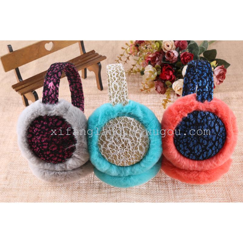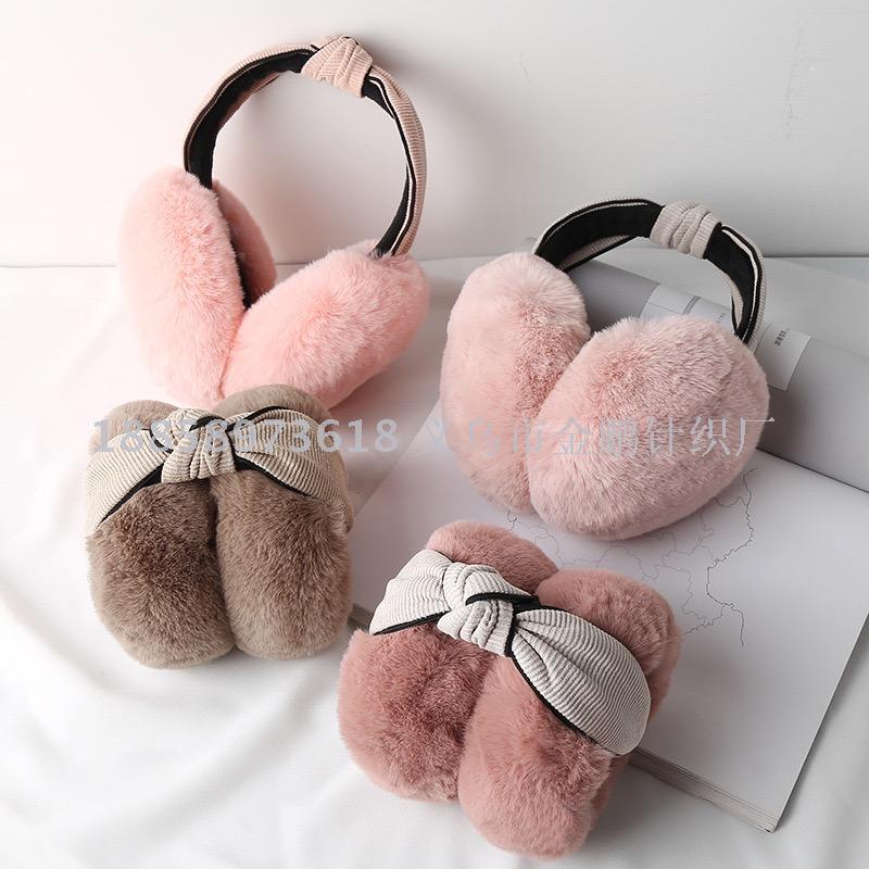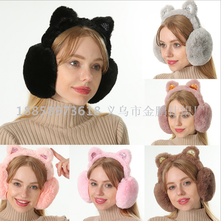 韩版保暖卡通女冬季耳套蝴蝶结亮片猫耳朵毛绒耳套护耳獭兔毛耳罩