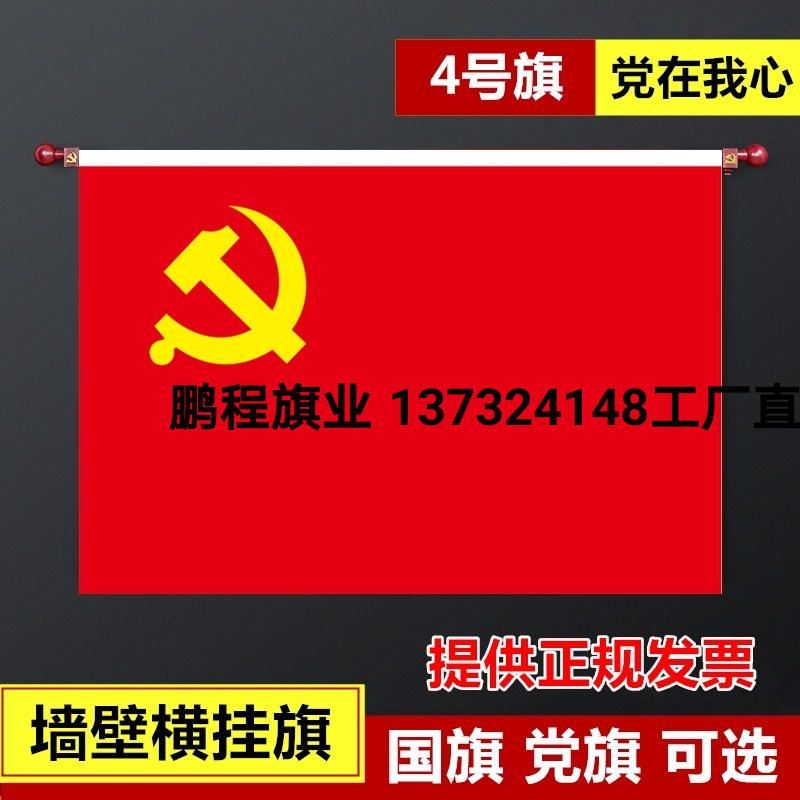 5号4号3号墙壁挂党旗国旗入党誓词旗室内旗杆墙壁横挂悬挂式党旗