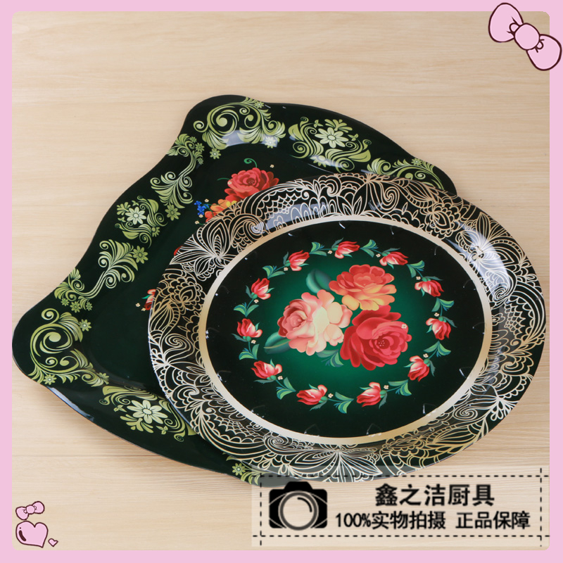 不锈钢厨具新疆特色饭店民族风彩色花纹不锈钢长盘不锈钢托盘果盘