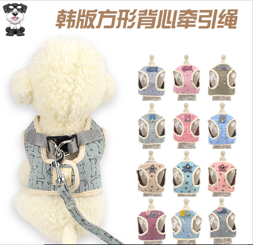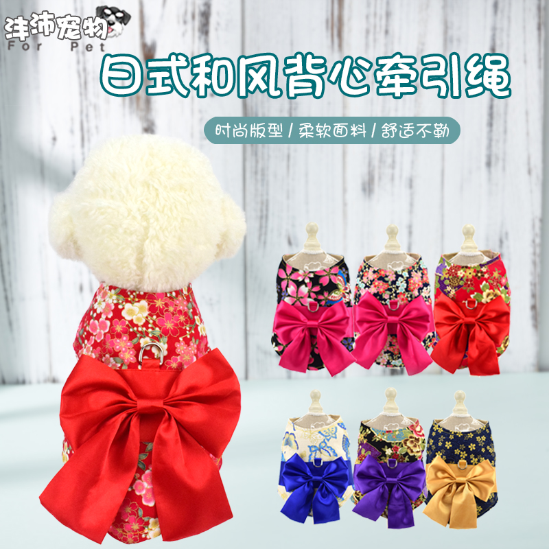 日式和风宠物胸背带 网格透气背心式猫狗牵引绳 宠物用品厂家批发