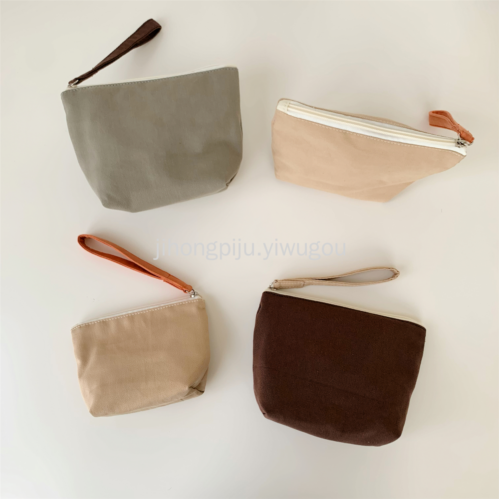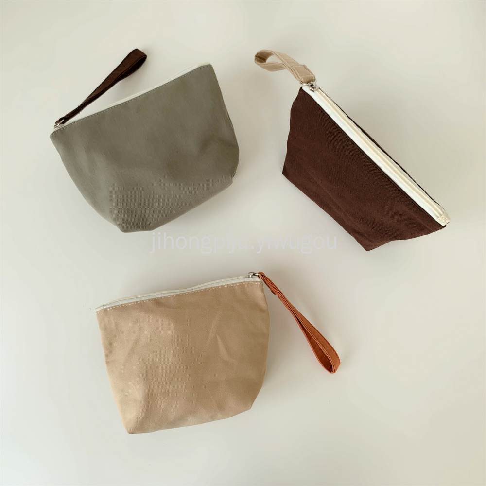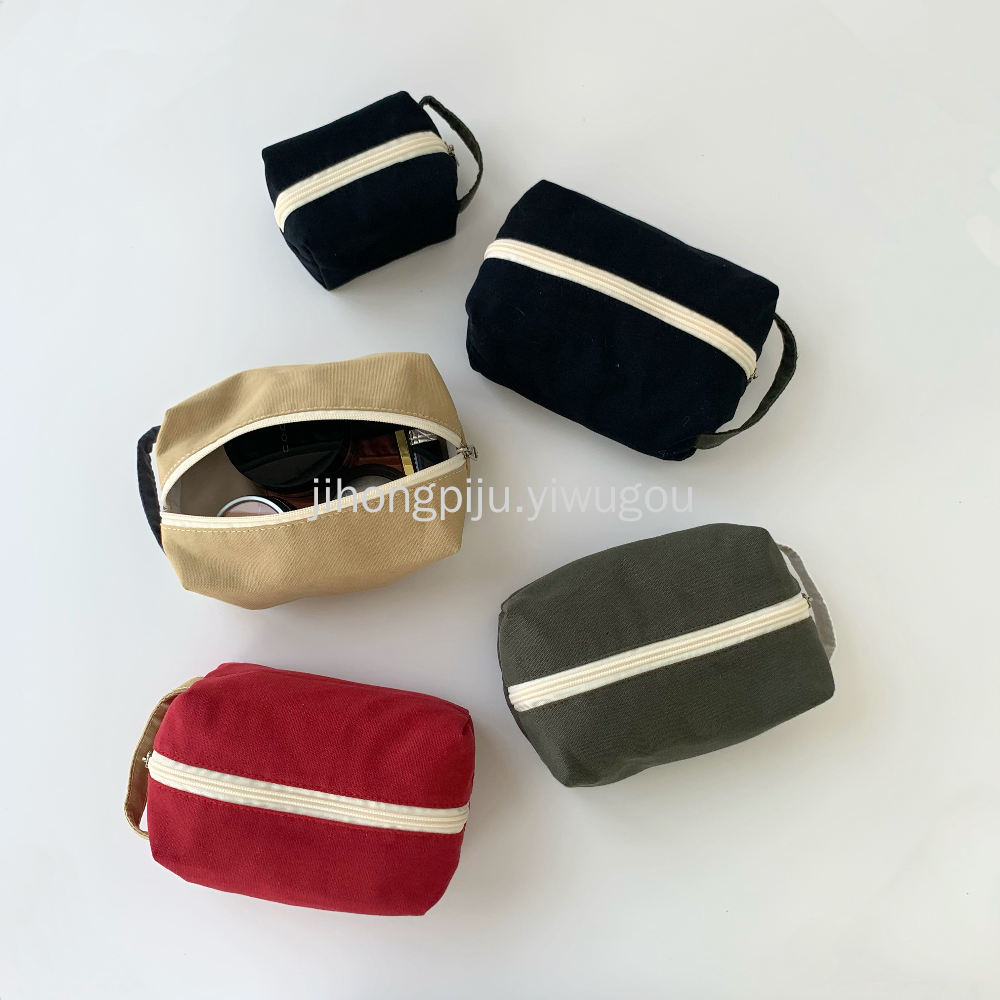 小号帆布化妆包零钱包棉布撞色纯色简约通勤迷你收纳洗漱包大容量