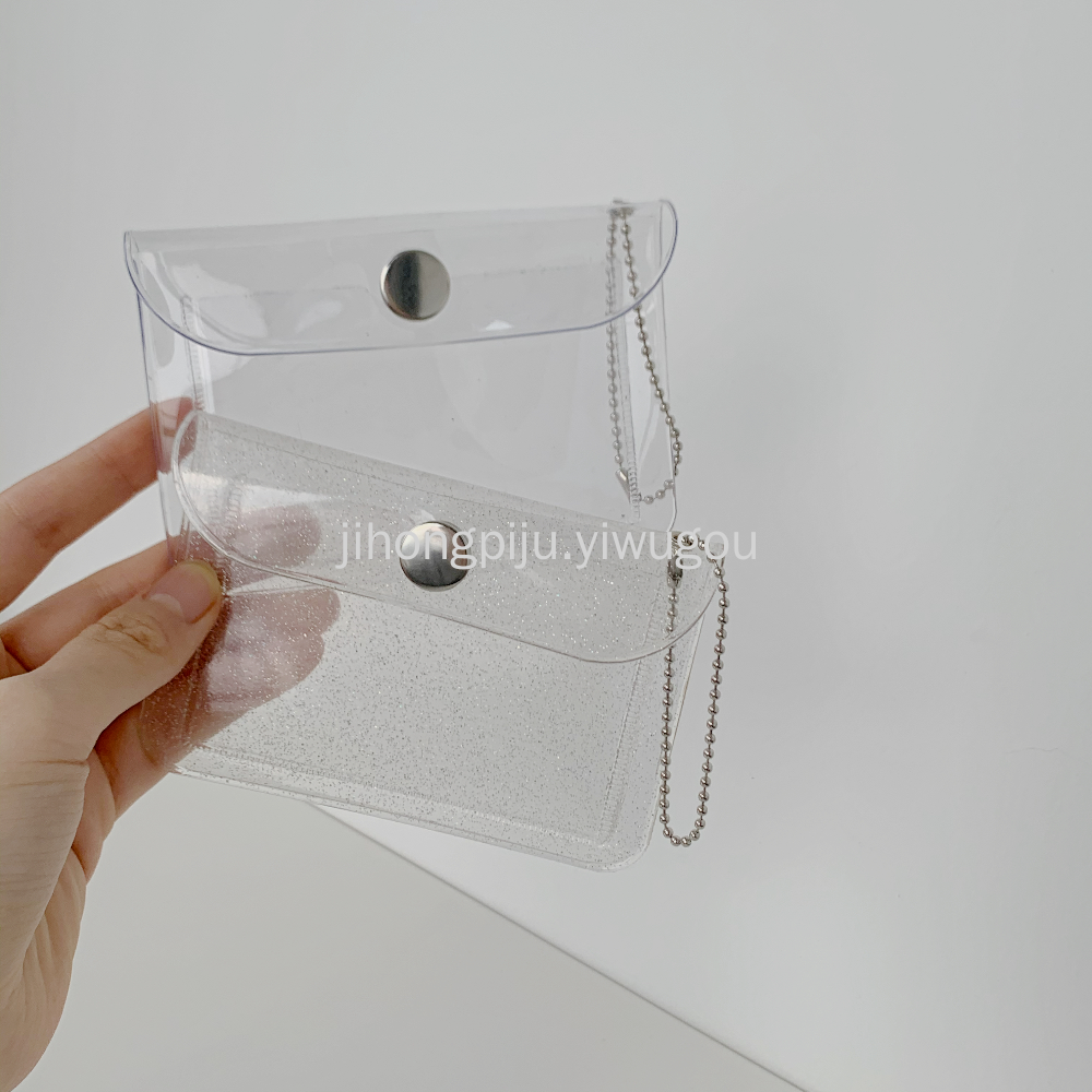 PVC透明印花卡包ins迷你按扣银行卡保护套闪粉学生粉丝小钱包