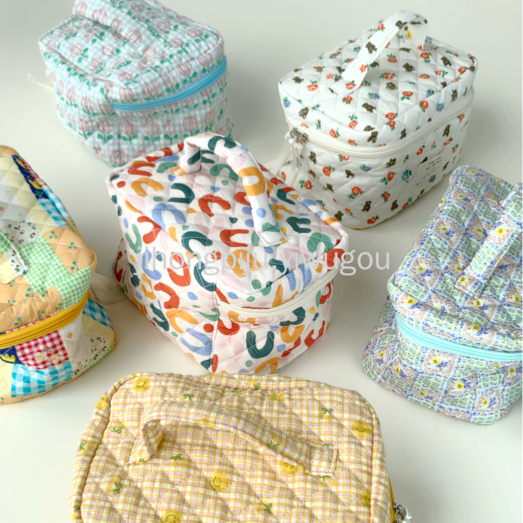 手提化妆包学生大容量护肤品收纳包洗漱便携棉布可爱小熊ins旅行