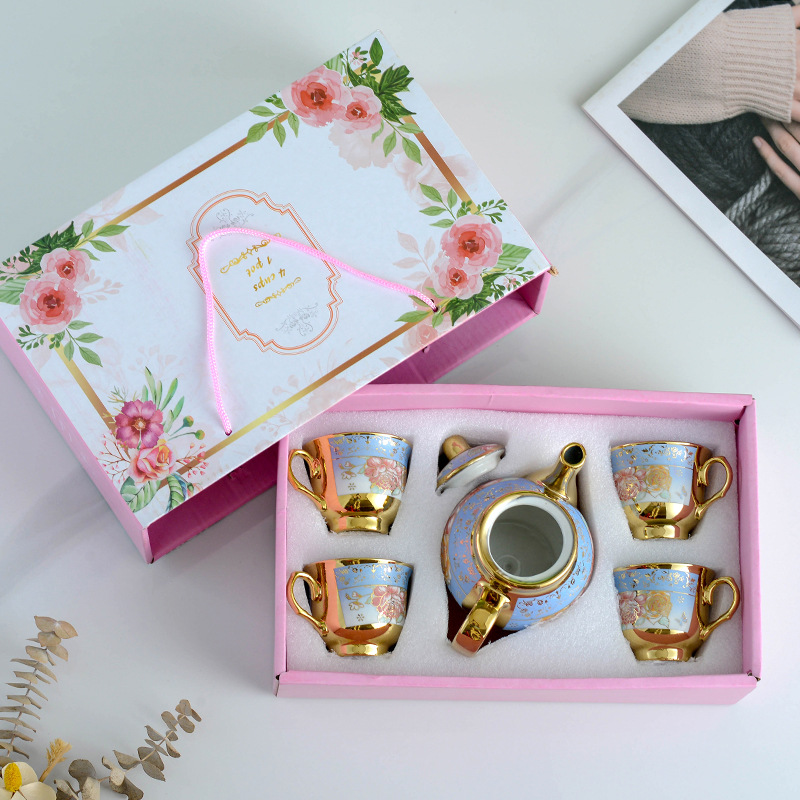 欧式电镀陶瓷茶具套装镀金咖啡杯碟会销礼品陶瓷杯壶套装LOGO