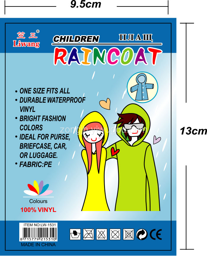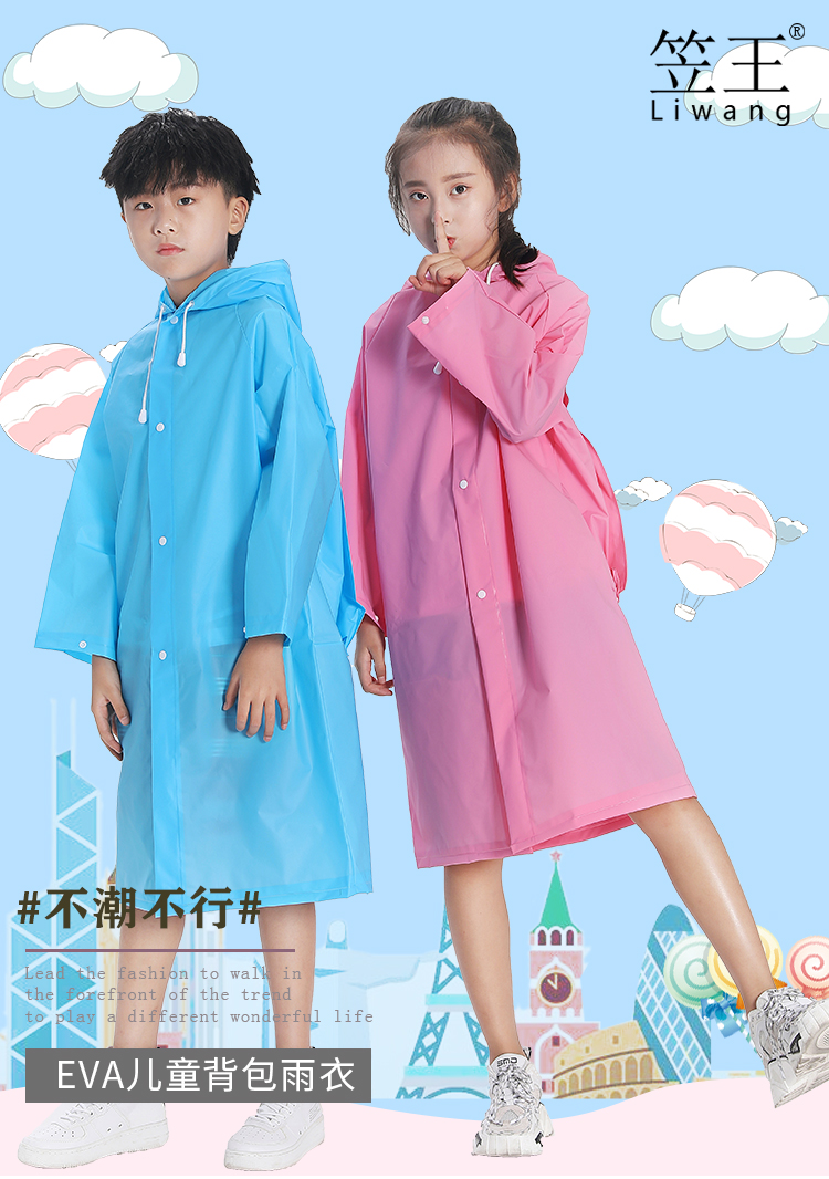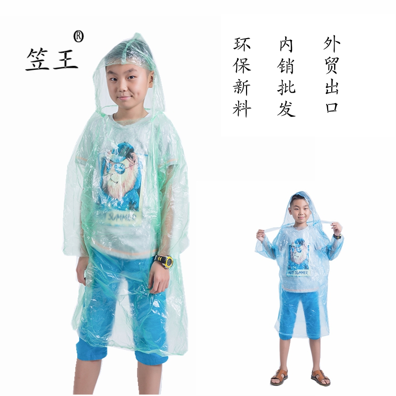 笠王品牌义乌厂家直销工厂店纽扣PEVA儿童户外旅游加厚一次性雨衣