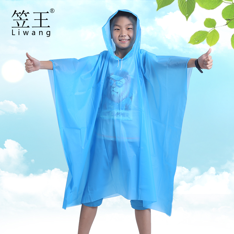 笠王厂家直销PVC户外徒步大童充气学生雨披带书包位男女通用雨衣