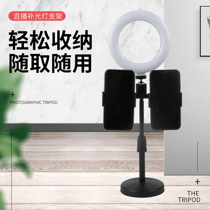 6寸双机位补光灯 手机直播灯架 自带升降杆环形灯圆盘桌面支架