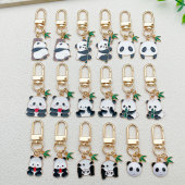18款可选搞怪熊猫卡通滴油钥匙扣竹叶配件小吊坠背包挂件现货批发