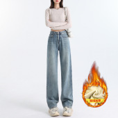 窄版直筒牛仔裤女2024秋冬新款高腰宽松显瘦深蓝阔腿裤百搭拖地裤