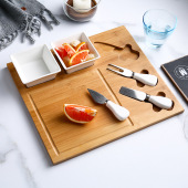 北欧风牛油刀陶瓷碟 西餐黄油奶酪盒带竹盖 家用方形牛油盒套装