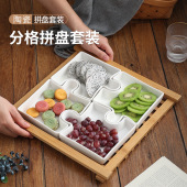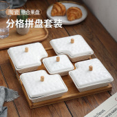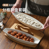 日式简约风陶瓷组合果蔬盘 家用民宿茶馆多用分格拼装干果碟陶盘