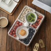 现货促销日式面包水果试吃盘陶瓷透明塑料盖分格小吃点心展示拼盘