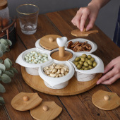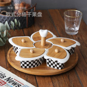 喜糖盘陶瓷分格带盖果盘带旋转竹座北欧风格水果干果展示盘子批发