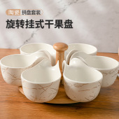 新款可旋转挂式干果盘 家用餐厅酒店摆台水果盘陶瓷分格拼盘套装
