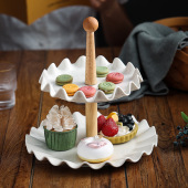 欧式陶瓷双层水果盘自助餐展示架 下午茶糖果盘甜品架点心托盘架