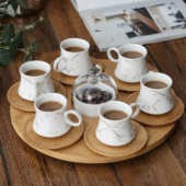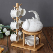大理石金纹陶瓷咖啡杯碟北欧家用下午茶壶茶杯带竹架水果茶壶套装