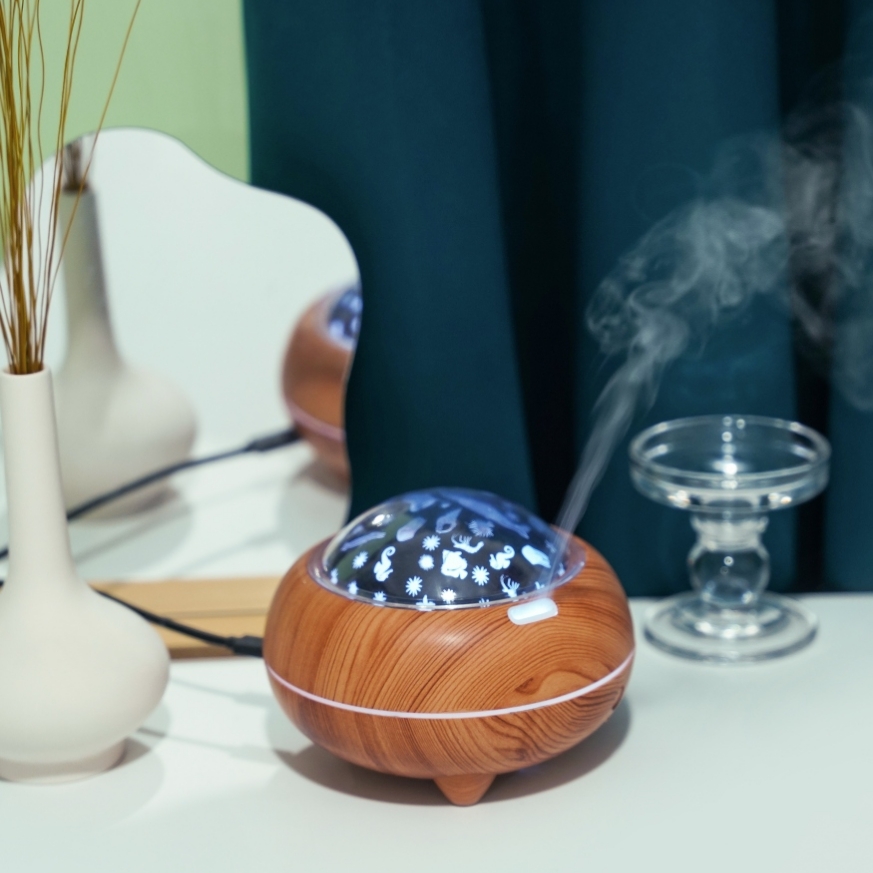 创意500ml香薰加湿器 家用静音遥控超声波雾化器七彩香薰机