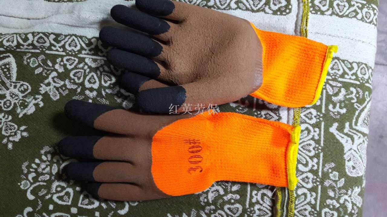 毛圈发泡手套工业劳保手套棉线乳胶劳保手套保暖工作浸胶手套批发