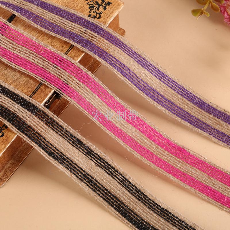 棉麻细条纹织带彩色细条纹花边带 鞋材帽子辅料,手工打花麻织带