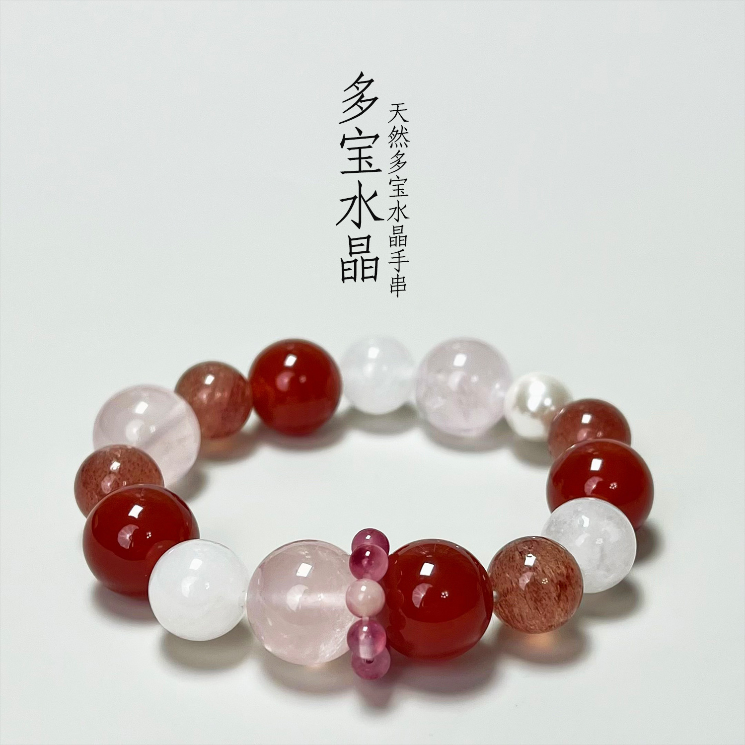 天然多宝水晶小众精致女款原创小众设计红玛瑙粉水晶跑环手串批发