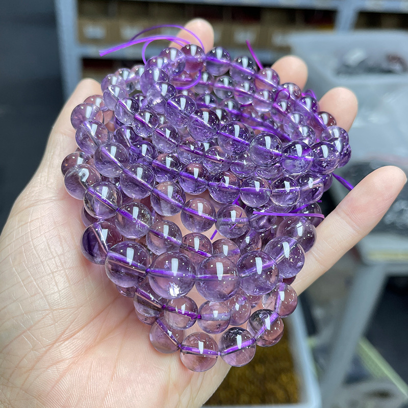 天然冰透巴西紫水晶手串百搭素单圈薰衣草紫水晶圆珠手链饰品批发