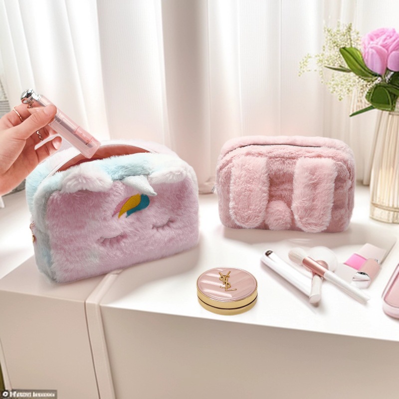 可爱毛绒款化妆包便携式洗漱包大容量干湿分离旅行洗澡手提收纳包